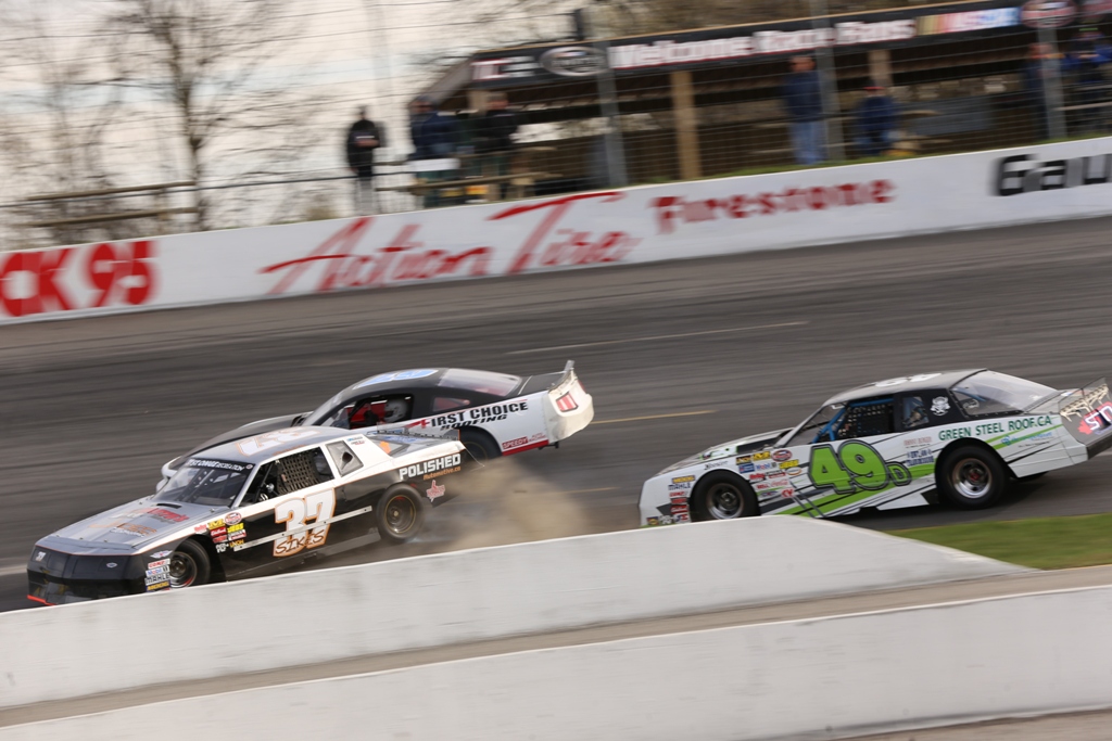 Morrison got a good restart to put the No. 83 FREDDIE’S DAMN GOOD FRIES, HOT SPOT AUTO PARTS, LITTLEJOHN BARRISTERS, UCA, RENAUD BOYS, JB BARNES, FOX’S BAKERY AND DELI entry out front ahead of Mombourquette, as Weeda and Semeraro ran side-by-side for third. The pair was then both passed by Howse for third on Lap 3, before the caution flew for Holmes stopping in turn two with a flat tire. Archibald pulled into the pits under the yellow-flag, done for the event.