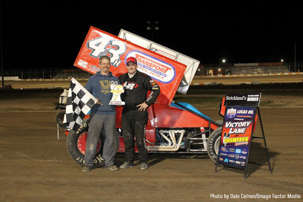May 24, 2017 – Ryan Hunsinger drove from the ninth starting position to take the lead from Jesse McDonald and held off a tough field to win Ohsweken Speedway’s season opening Crate Sprint Car feature last Friday night. It was the first win of the season for the Durnin Motorsports team in the Transport Sales and Service/Retail Design Group No.43h J&J Chassis and the first since