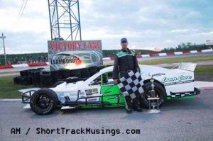Gary Elliott rebounded to finish sixth, followed by Dale Reinhart, Matt Barton, Tim Tolton and David Balych. Ryan Kenney finished 11th despite spinning on Lap 19, followed by Wally Wilson, Aaron McLean and Dave Hodgkinson.