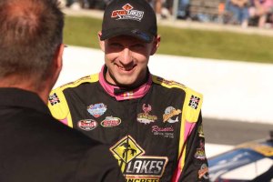 Shepherd got the spot on Lap 8, with Goetz passing Travis for second on Lap 9 before the caution flew for Fumerton spinning in turn two, courtesy of contact with Spencer-Walt. With 27 laps to go, Holdaway led Goetz, Travis Hallyburton, Bentley, Thayne Hallyburton, Shepherd, Morrow, Maltese, Latimer, Billy Zardo, Wilkinson, Quesnelle, Inglis, Gresel, Adams, Meyer, Spencer-Walt and Fumerton.