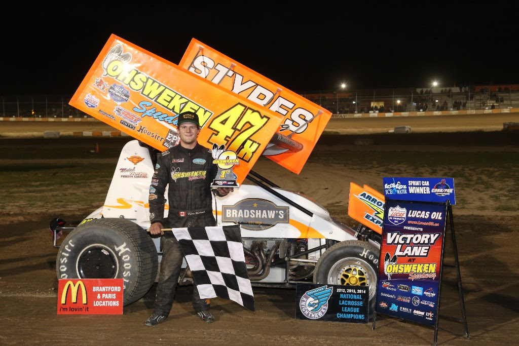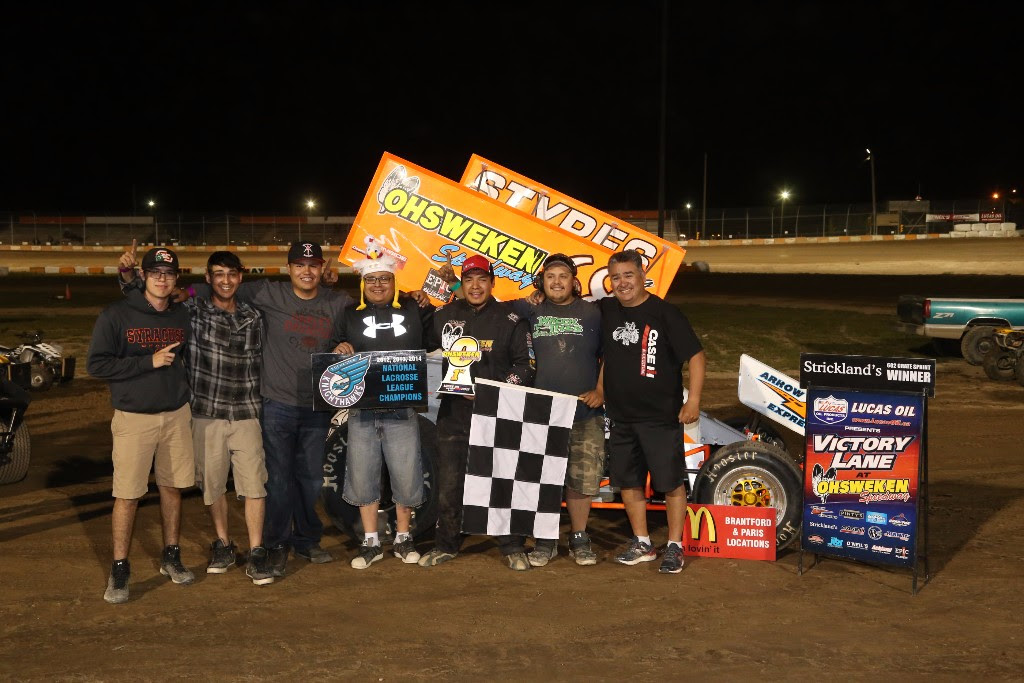 OHSWEKEN, Ont. – June 9, 2017 – A total of 127 drivers signed in for competition at Ohsweken Speedway on Rochester Knighthawks and McDonald’s of Paris and Brantford night. The Patriot Sprint Tour versus the Kool Kidz-Corr/Pak 360 Sprint Cars headlined the show and Dylan Westbrook went to victory lane. Aaron Turkey, Ryan Dinning, Dave Crumbie and Gillian Hils also went to Lucas Oil Victory Lane.