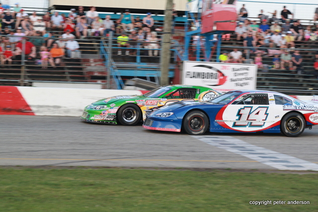 The Pro Four Modifieds were the last race before intermission with Linc Erison and Brian Nanticoke on the pole. Nanticoke led lap one and would lead the rest of the way picking up the win.
