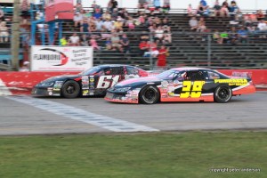 Super Stocks were next with Nick Troback and Chris Howse up front. Not as many cars tonight but that didn’t stop the excitement. Some of the most exciting action with none of the top runners backing down. Troback led lap one. Shawn Arnott, Kevin Gallant and Chris Howse were involved and Gallant and Howse had some damage. Troback led for most of the race but he slowed as they raced continued. Arnott was the new leader and Gallant’s woes continued as he slowed and headed for the pits and did not finish. As the checkers flew it was Arnott followed by Howse and Troback.