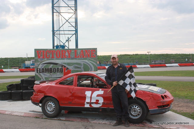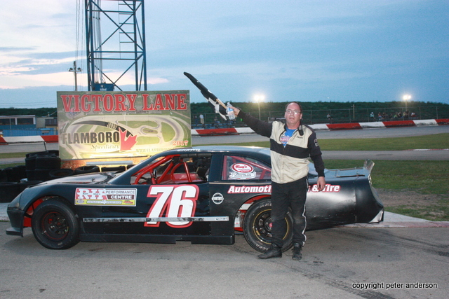 That brought to a close a very exciting night of racing. Once again thanks to all the drivers and sponsors that made this a very fun and successful Meet the Drivers Night. Make plans to join us next Saturday, June 24th as the OSCAAR series is in town. The Super Late Models, Modifeds, Pro Midgets and Hot Rod series join us as well as the Lucas Oil Canadian Vintage Modifieds. They will run three features, their two regular races plus a rained out feature from May 20th. The Pure Stocks and Pro Four Modifieds are also on hand. Pits open at 3pm, front gates at 5pm and racing gets underway at 6pm. Check the website for all the details, point standings and much more, http://www.flamborospeedway.ca