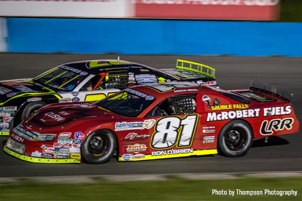 The Sauble Falls Racing No.81 eventually found its way to the second spot. Gresel ran there behind leader Brandon Watson until a late-race restart when he was pinned to the outside lane, allowing Shawn McGlynn to take over the runner-up spot.
