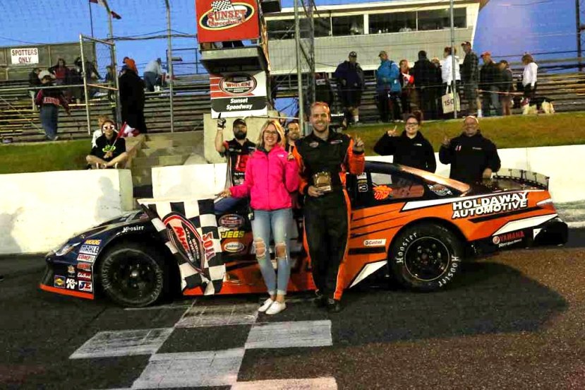 A familiar face graced Sunset Speedway feature victory lane on Saturday night as Taylor Holdaway picked up the Sauble Falls Tent and Trailer Park feature win.