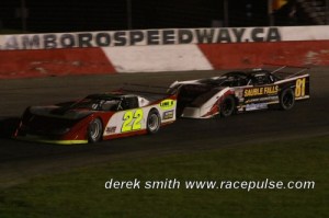 The OSCAAR Super Late Models would run two features on the night. Tyler Hawn and Dario Capirchio led the field of nine to green. Hawn led lap one and led a few laps until a caution on lap four. Andrew Gressel who always does well at Flamboro was the new leader on the restart. A caution on lap 18 wouldn’t faze Gressel and he held on for the win in the first feature followed by Glenn Watson and Tyler Hawn.