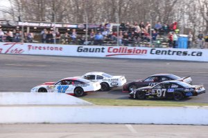 With eight laps on the board, Mombourquette led Doucette, Holmes, Tiemersma, Passer and Everingham. Tiemersma’s strong early run came to an end on Lap 9, when he went around for the spin in turn two for the second caution.