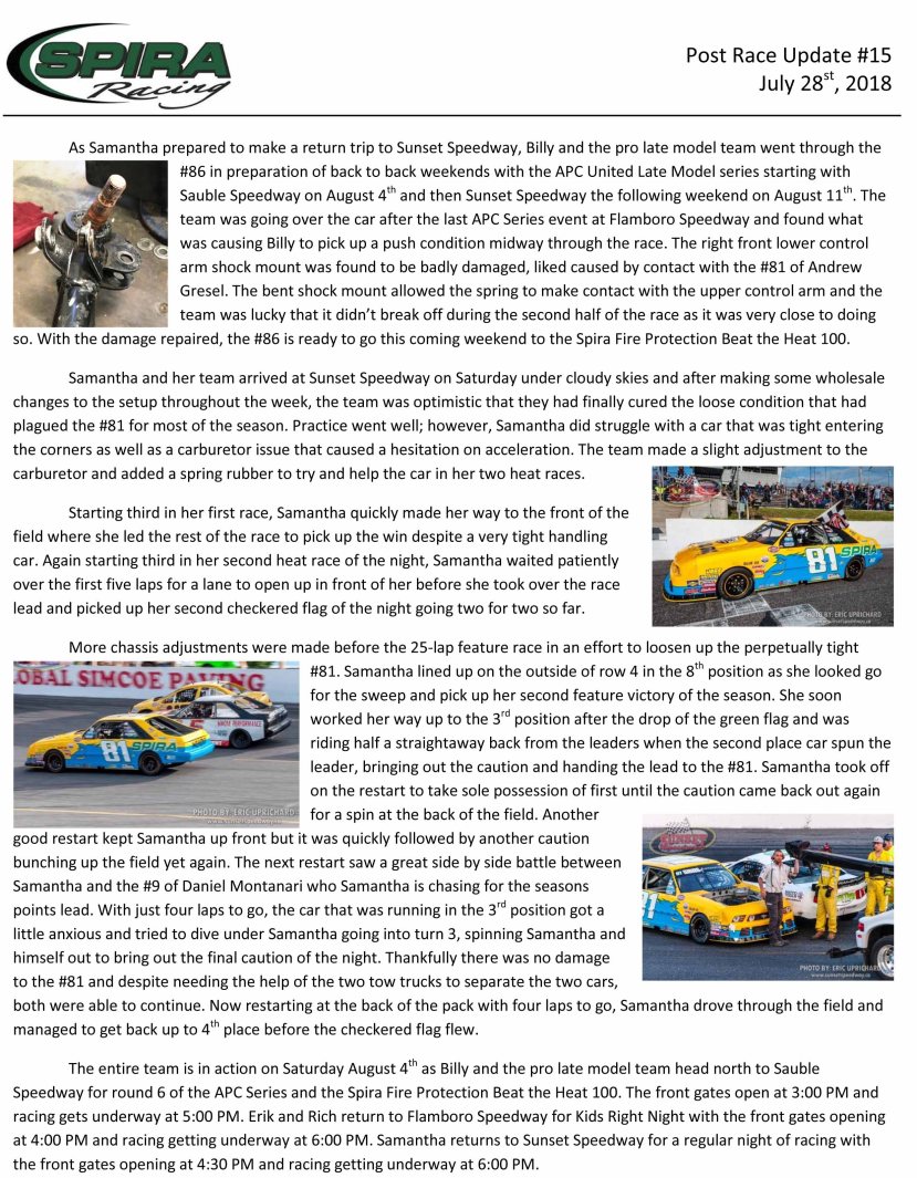 mini stocks Spira Racing – Post Race Update No. 15 By officialrelease01 on August 1, 2018 • ( Leave a comment ) Share this: Click to share on X (Opens in new window) X Click to share on Facebook (Opens in new window) Facebook Like Loading... Related Categories: mini stocks, Press Release, Sunset Speedway Tagged as: Press Release, samantha shaw, signs of innovation mini stocks, spira racing, sunset speedway