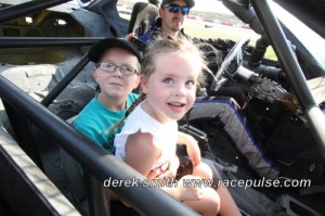 As the temperatures continue to stay hot, the action does on-track at Flamboro Speedway as well. Children were entertained on Saturday night, between receiving bikes and backpacks, to riding in the cars before the races began. The adults were also entertained, but we’d expect that based on the on-track action.