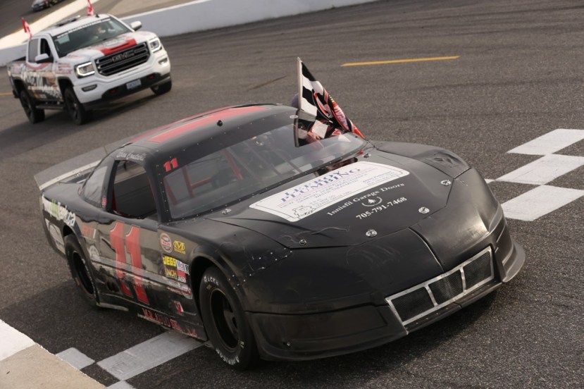 Starting the feature from the third position, he’d battle side-by-side with Dustyn Mombourquette in the early stages for the runner-up spot, taking it on Lap 2. He’d remain there until he was passed just before the halfway mark. Fading back to fourth by the halfway mark, he’d work his way back up towards the front, passing Dan Archibald with eight laps to go cross the finish line in the third position.