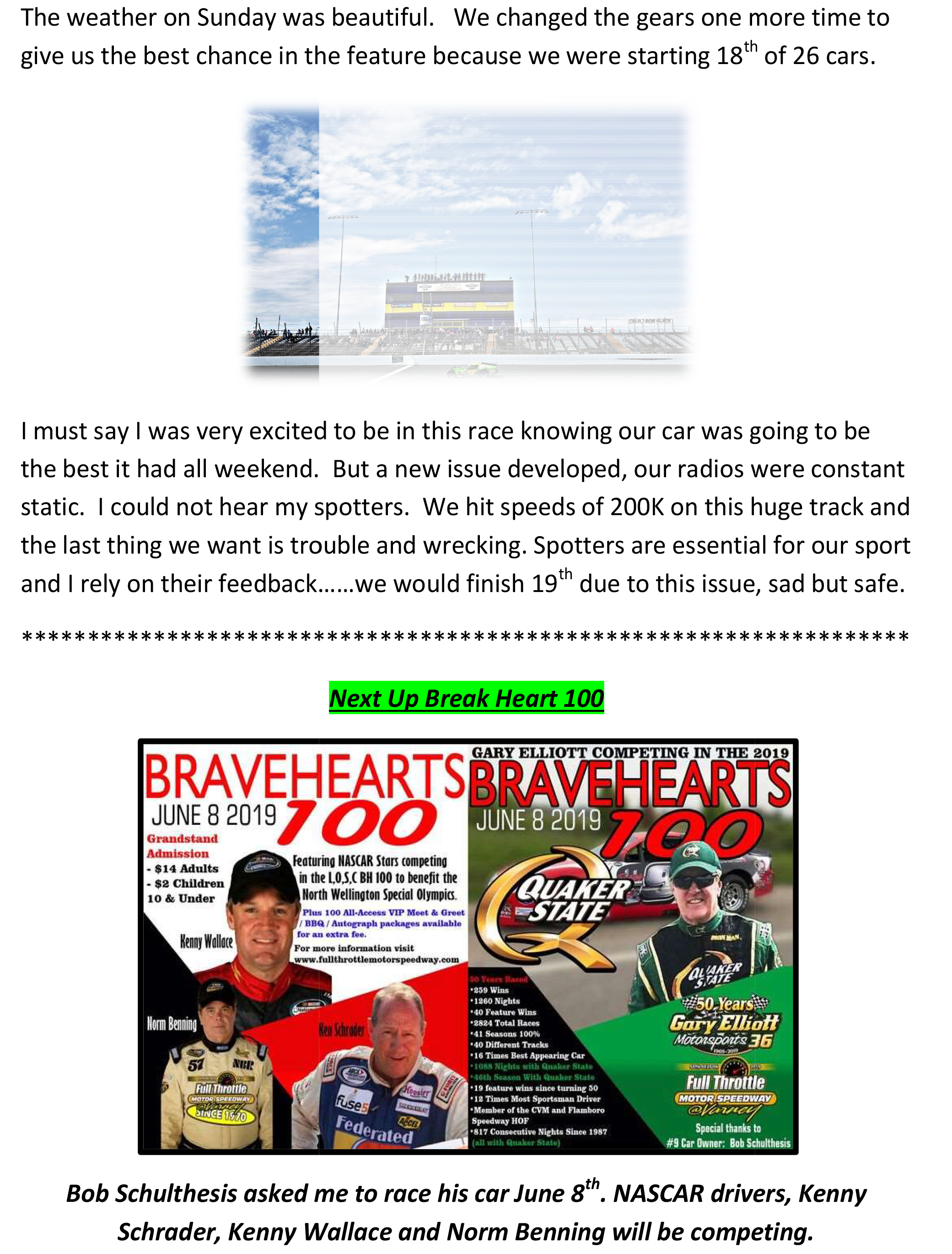 OSCAAR Quaker State Team Survives a Tough One; Radio Communication Took Us Out By officialrelease01 on June 4, 2019 • ( Leave a comment ) Share this: Click to share on X (Opens in new window) X Click to share on Facebook (Opens in new window) Facebook Like Loading... Related Categories: OSCAAR, OSCAAR modifieds, Press Release Tagged as: gary elliott, gary elliott motorsports, oscaar, OSCAAR modifieds, Press Release