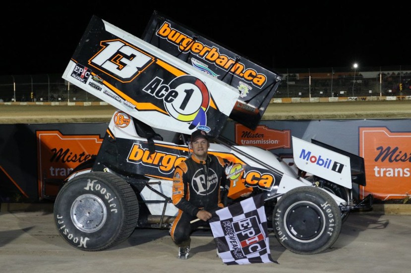With three laps to go, Lampman maintained a three-second lead and Lowenberg’s fate was sealed after some contact appeared to take the rad out of his No.14. The race stayed green though and Lampman dominated the final laps to score his first career win holding off the defending champion Bailey and veteran Ken Sargent to accomplish the feat. Billy Bleich and Ryan Dinning rounded out the top-five. Dickie, Ryan Beagle and Bailey scored victories in the qualifying heats earlier in the night.