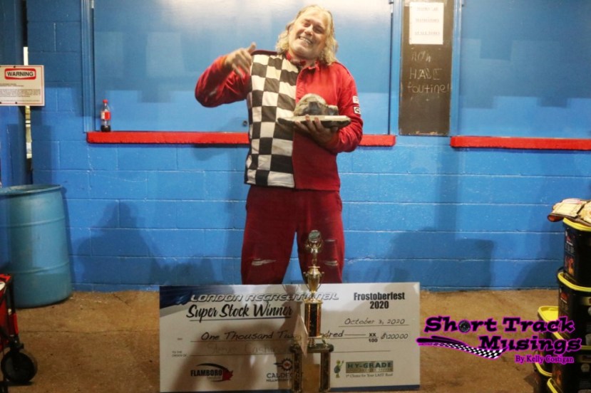 In a race that saw some twists and turns throughout, Steve Cashmore came out on top at the end to score the victory in the Super Stock portion of Flamboro Speedway’s Frostoberfest on Saturday.
