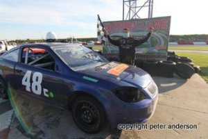 Shawn Taylor has been racing at Flamboro for a long time, but suffered a hard crash a couple years ago, resulting in having to rebuild his car completely. His hard work paid off, though, as he was able to return to victory lane on Saturday. Dylan Sharpe placed second, followed by Dale Millard, Gillian Hils, and Cole Quinton. John Istead finished sixth, followed by Mark Thorne, Mike Hooper, and Dave Goodacre. Rick Robinson failed to finish.