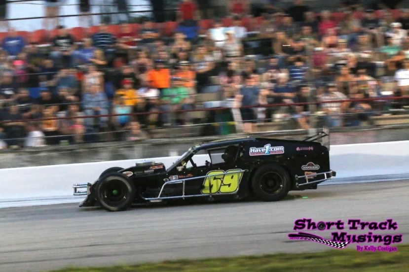 “I was running for Eric Wagner in his #50 car,” he started. “We started deep in the field and slowly worked my way up to the top five, when one of the leaders spun in the center of the corner. I went high to avoid and was committed to that lane; then all of a sudden he went up the racetrack leaving me with nowhere to go. The damage to both cars was small, but he ended up with a broken leg and I had a sore elbow! It was a hard hit for sure!”