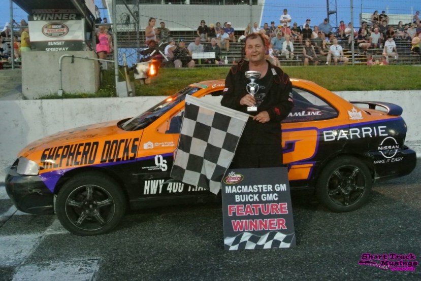 INNISFIL, Ontario — When Calvin Reesor was looking for someone to fill-in on Saturday night, he turned his No. 2 Nissan over to Mike Brown. It was the right decision, as Brown scored a hat trick in Bone Stock competition on Saturday night at Sunset Speedway.
