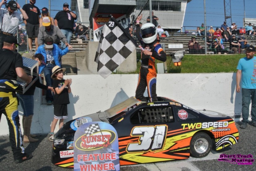 INNISFIL, Ontario — Showing the same speed everyone has grown used to, Jake Spencer-Walt dominated the Jr Late Model feature as part of Spring Velocity at Sunset Speedway on Monday.