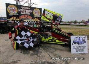 The Qwick Wick T.Q. Can-Am Midgets were also on hand, and it was a familiar face taking the checkered flag there. Cory Whittam wasted no time taking the lead virtue of a three-wide move on the opening lap, pacing the field the rest of the way en route to winning ahead of James Stanley and Daniel Hawn. Paul Jorgensen who led the field to green was fourth with Jr Farrelly completing the top-five, followed by Andrew Whelan, Jeff Blackburn, David Miller, Mike Westwood, and Tyler Sagan. Bob Bailey was 11th in front of Jody Bound, Sherry Hogan, Ryan Fraser, and Cassidy March.
