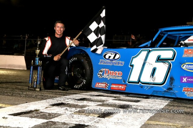 MILLGROVE, Ontario — Kyle Crump made his trip from the United States to Flamboro Speedway on Tuesday, August 13 worthwhile, picking up the feature win in the Outlaw Super Late Model Gold Rush 124.