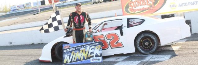 The first appearance for Jake Sheridan at Sunset Speedway for 2025 worked out well, as he dominated by leading flag-to-flag in the 50 lap Late Model feature on Saturday.