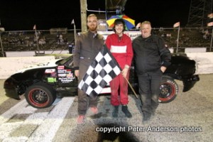 Ricky Willigar took the lead with nine laps to go to win the first Grindstone Landscaping Canadian Vintage Modified feature ahead of TJ Marshall, Mike Podd, Jordan Ramsbottom, and Ty Riopelle. Scott Tonelli battled his way forward for sixth in front of Cam Thomson, Dave Evison Sr., Steve Murdoch, and Quinton Murdoch. Mike Klotz and Rodney Rutherford both failed to complete a lap.
